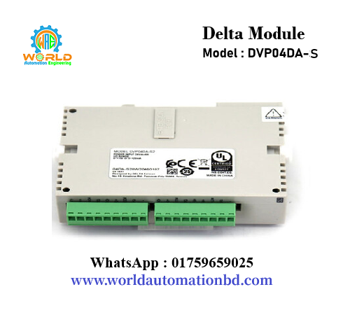 DVP-04DA-S-Delta Analog Output Module 4-Channel Analog Output. Output range -20mA-20mA and -10v-10v.The Delta Analog Output Module-DVP-04DA-S series can read/write the data of analog output module by using commands FROM / TO via DVP-PLC SS/SA/SX/SV/SV2 etc. MPU program.