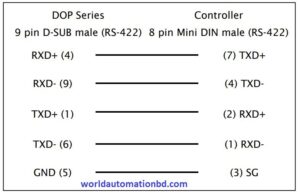 DOP-FX-3M-Communication Cable (Communication with Mitsubishi FX- Series PLC And DOP-B Series and DOP-100 Series HMI).Cable Length 3 Meter. Port1-DB9-Pin Male Port2- Mini din-8 Pin Male Connector.