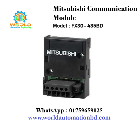 FX3G-485-BD-Modbus Communication Module is a communication board for RS485 connected to the base unit for  of the FX3G Series programmable controller to be use for the following applications. Data transfer using no protocol. ii. Data transfer using dedicated protocol. iii. Data transfer using the parallel link. iv.